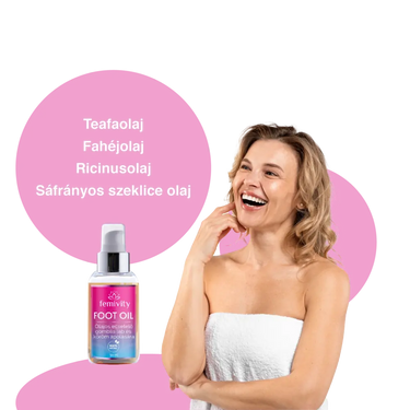 A Femivity Foot Oil olajos ecsetelő antibakteriális és gombaölő hatású teafa- és fahéj illóolajjal, sáfrányos szeklicével, ricinusolajjal segítséget nyújt a lábfej és a köröm gombásodása esetén.