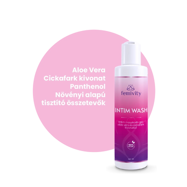 A femivity Intim wash aloe vera és cickafark kivonatot tartalmazó intim mosakodó mindennapi használatra, mely segít egyensúlyban tartani a pH értéket az intim területen.